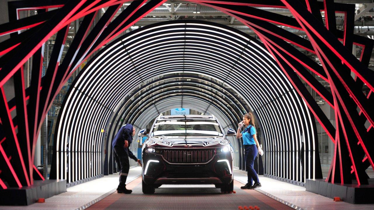 Togg CEO'su Gürcan Karakaş, Togg Gemlik Teknoloji Kampüsü'nde basın mensuplarına gövde, boya ve montaj tesislerini gezdirdi. Tesisteki incelemelerin ardından kameraların karşısına geçen Karakaş, özel açıklamalarda bulundu. 209 robotla birleştirme ve kaynak yapıldığını ve her 3 dakikada, 1 aracın banttan indirildiğini söyleyen Karakaş, günde 35-40 aracın üretildiğini ancak rakamın sürekli artacağını belirterek, "Gemlik Teknoloji Kampüsümüzde 3 ana birimimiz var. Bunları sırasıyla gezdik. Şu an gövde atölyesi içerisindeyiz. Boyahanemiz var. Boyahaneden sonra tüm akıllı cihazlarımızın montajının yapıldığı montaj birimimiz var. Gövde tesisimizin içerisinde, takribi 50 bin metrekare içerisinde, 209 robotla beraber birleştirme ve kaynak işleri yapılıyor. Daha sonra her türlü ayarlar yapıldıktan sonra boya birimimize gönderiliyor. Buranın teknik kapasitesini 3 dakikada 1 araç çıkacak şekilde kurguladık. Fakat her şirkette olduğu gibi bunun hızlanma süreci var. Biz de şu an o sürece başladık. O sürecin ortalarındayız. Günde 35-40 araç çıkarıyoruz. Bu soruyu 2 hafta sonra sorarsanız bu rakam daha yükselmiş olacak. Haziran sonunda hedeflediğimiz rakamlara ulaşmış olacağız" ifadelerini kullandı.