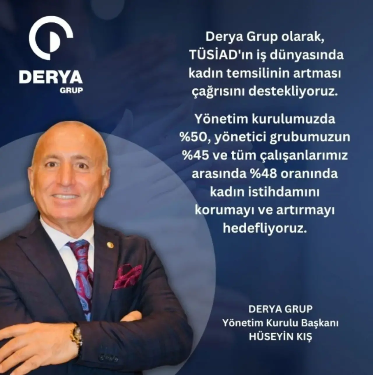 TÜRKONFED Yönetim Kurulu Üyesi ve Derya Grup Yönetim Kurulu Başkanı Hüseyin Kış, Derya Grup olarak iş dünyasında kadın temsilinin artırılması çağrısına destek verdiklerini duyurdu.