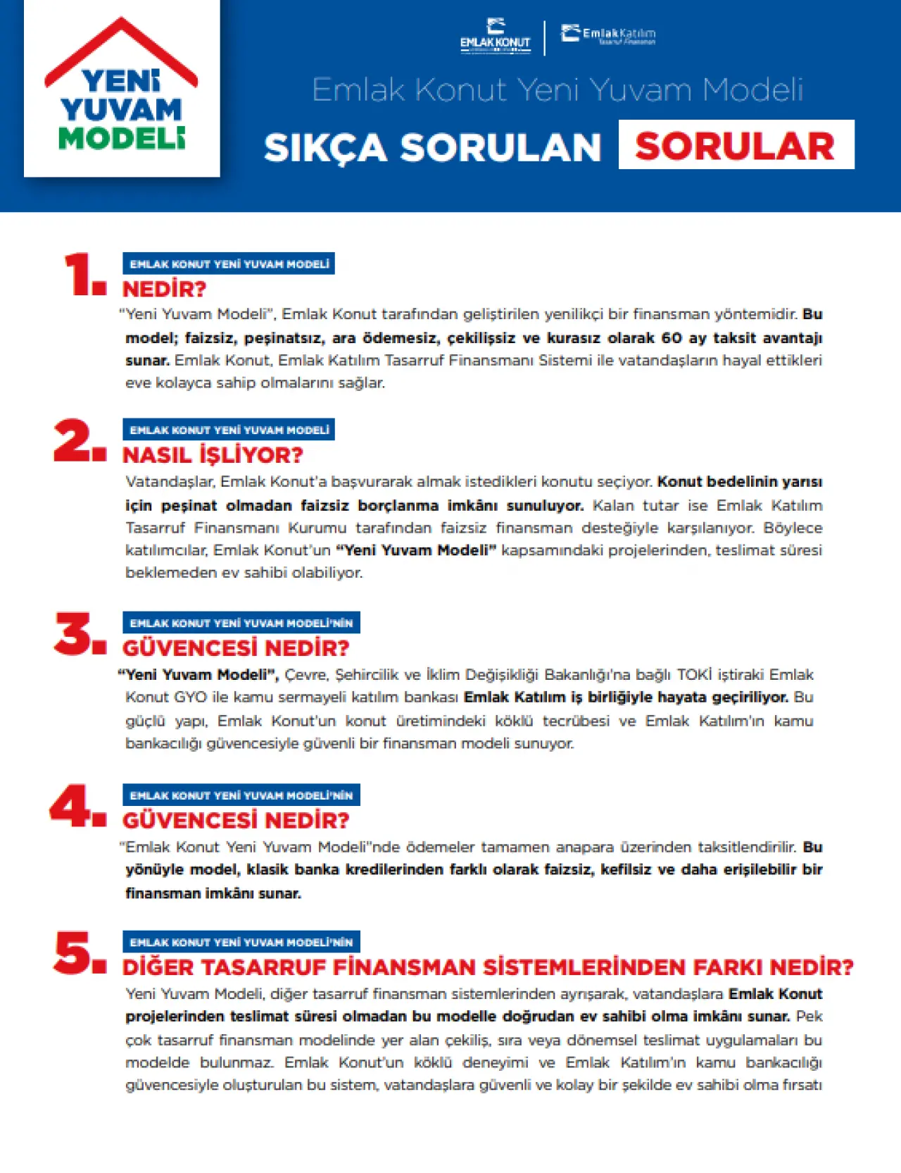 Çevre, Şehircilik ve İklim Değişikliği Bakanı Murat Kurum tarafından geçtiğimiz aylarda kamuoyuna tanıtılan bu sistem, Emlak Konut’un geliştirdiği konut projeleri üzerinden uygulanıyor. Emlak Katılım Bankası’nın finansal desteğiyle güvence altına alınan bu model, tasarruf finansmanı alanında yeni bir dönem başlatıyor.