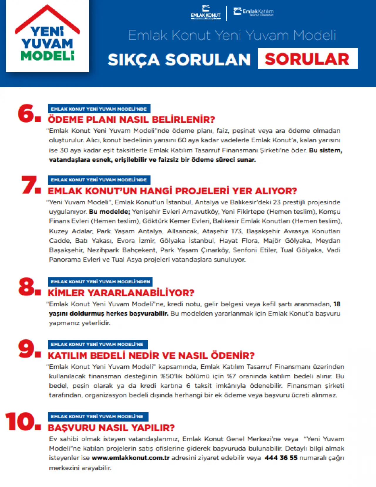 Sisteme katılmak isteyen vatandaşlar, Emlak Konut Genel Müdürlüğü’ne veya ilgili projelerin satış ofislerine başvuruda bulunabiliyor. Detaylı bilgiye www.emlakkonut.com.tr adresinden ya da 444 36 55 numaralı çağrı merkezinden ulaşılabiliyor.
