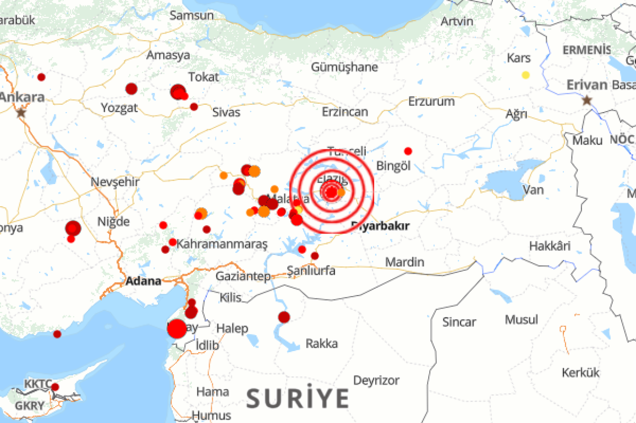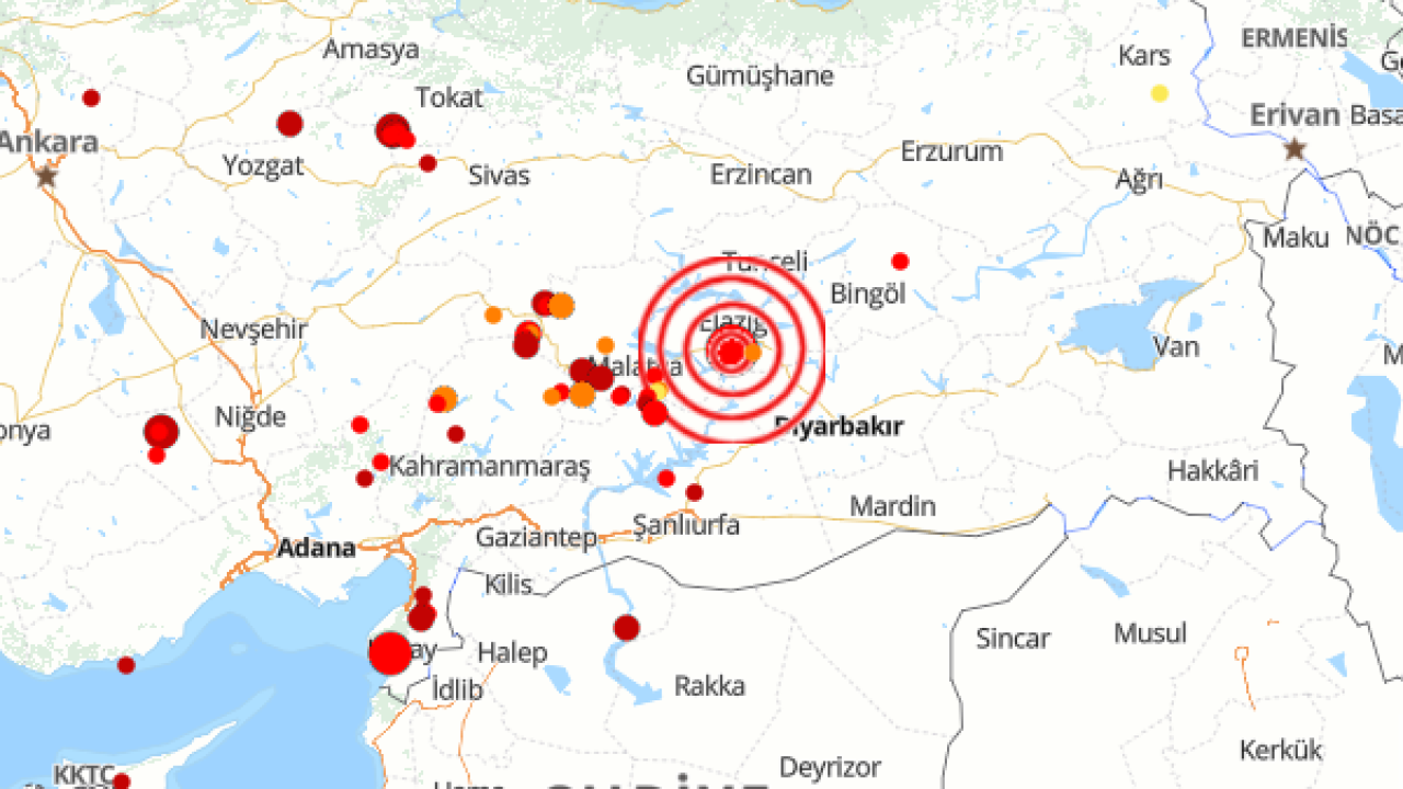 Boğaziçi Üniversitesi Kandilli Rasathanesi ve Deprem Araştırma Enstitüsü (KRDAE) verilerine göre, saat 23:57'de Elazığ'da meydana gelen deprem yerin 6.4 kilometre derinliğinde gerçekleşti.
