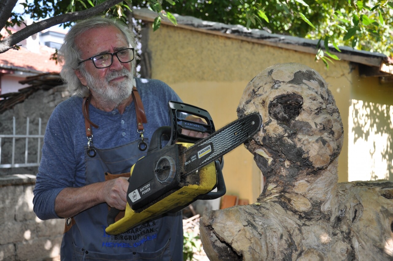 Salih Ökmengil, önce hobi olarak başlayan ve tutkusu haline gelen ahşap heykelcilikten ilerleyen yaşına rağmen vazgeçemediğini, bu sanata 52 yılını verdiğini dile getirdi.