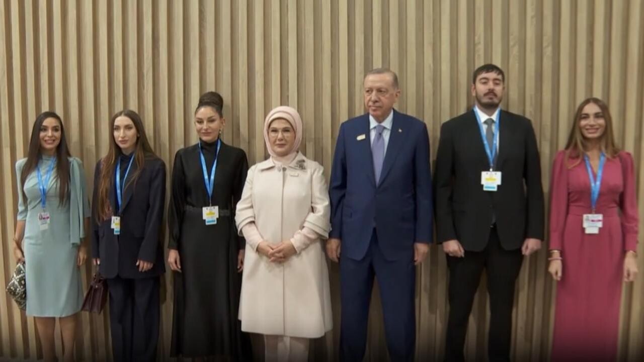 Cumhurbaşkanı Erdoğan ve birlikte geldiği eşi Emine Erdoğan'ı, Bakü Olimpiyat Stadyumu'nun yanındaki zirve için kurulan alanda Azerbaycan Cumhurbaşkanı İlham Aliyev ile BM Genel Sekreteri Antonio Guterres karşıladı. Zirve'nin yapıldığı COP29 Konferans Salonu'nda ise Azerbaycan Cumhurbaşkanı Aliyev'in eşi Mihriban Aliyeva, Emine Erdoğan'a sarılarak, "hoş geldiniz" dileklerini iletti.