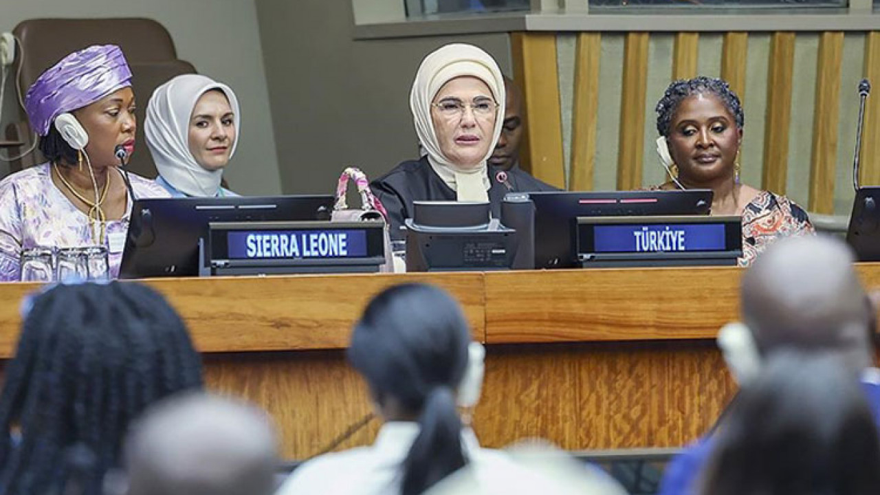 Birleşmiş Milletler (BM) 78. Genel Kurul toplantıları kapsamında New York'ta bulunan Cumhurbaşkanı Recep Tayyip Erdoğan'ın eşi Emine Erdoğan, Sierra Leone Cumhuriyeti Devlet Başkanı’nın eşi Fatima Maada Bio’nun ev sahipliğinde BM’de düzenlenen “Şiddetin Önlenmesi ve İyileşme Günü"nü anma programına katıldı.