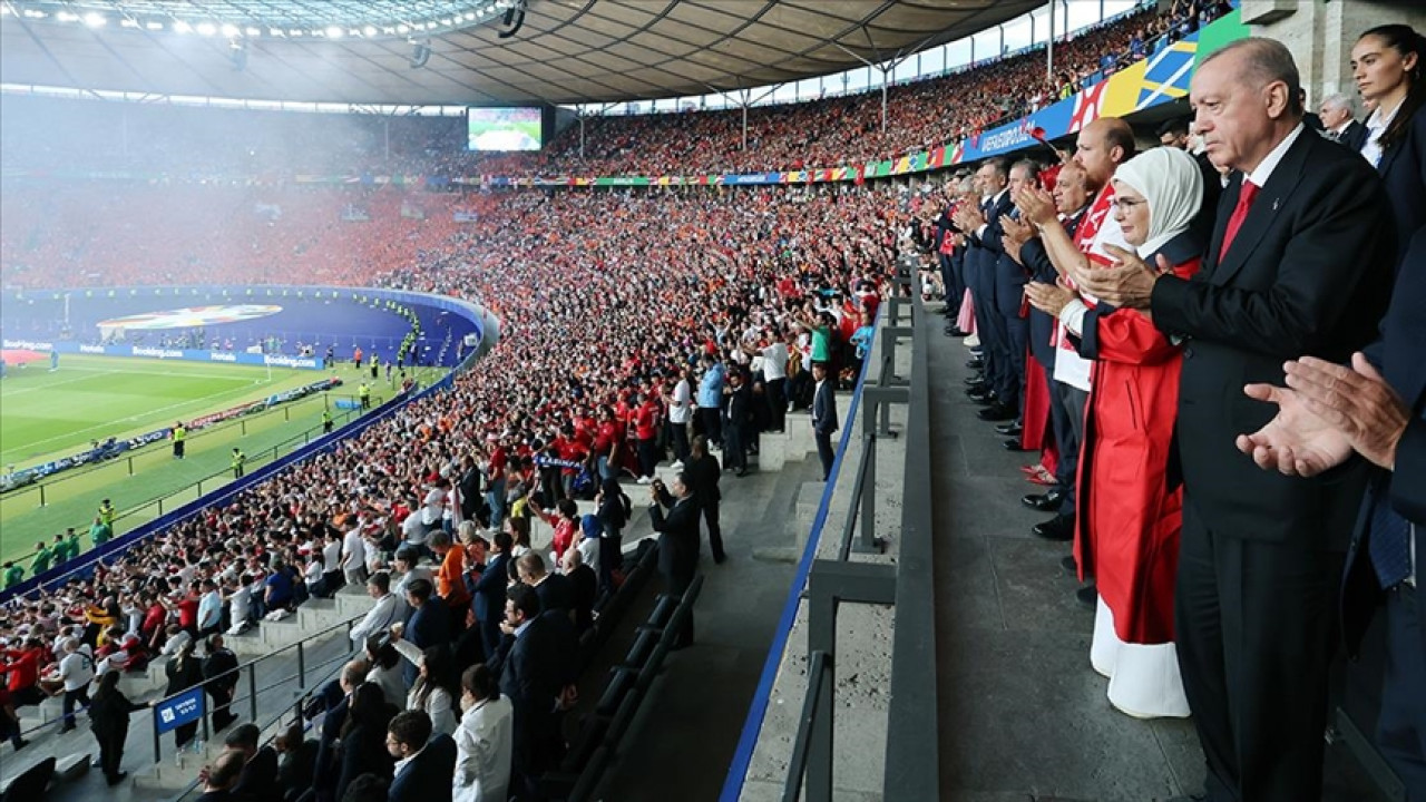 Cumhurbaşkanı Recep Tayyip Erdoğan'ın eşi Emine Erdoğan, Berlin Olimpiyat Stadı'nda oynanan ve Hollanda Milli Takımı'nın 2-1 skorla sahadan galip ayrıldığı maçın ardından X sosyal medya hesabından yaptığı paylaşımda, "Teşekkürler Bizim Çocuklar. Avrupa Futbol Şampiyonası’nda unutulmaz bir mücadele vererek, milletimizin gururunu ve sevincini zirveye taşıyan A Milli Futbol Takımı'mızı yürekten tebrik ediyorum." ifadesini kullandı.