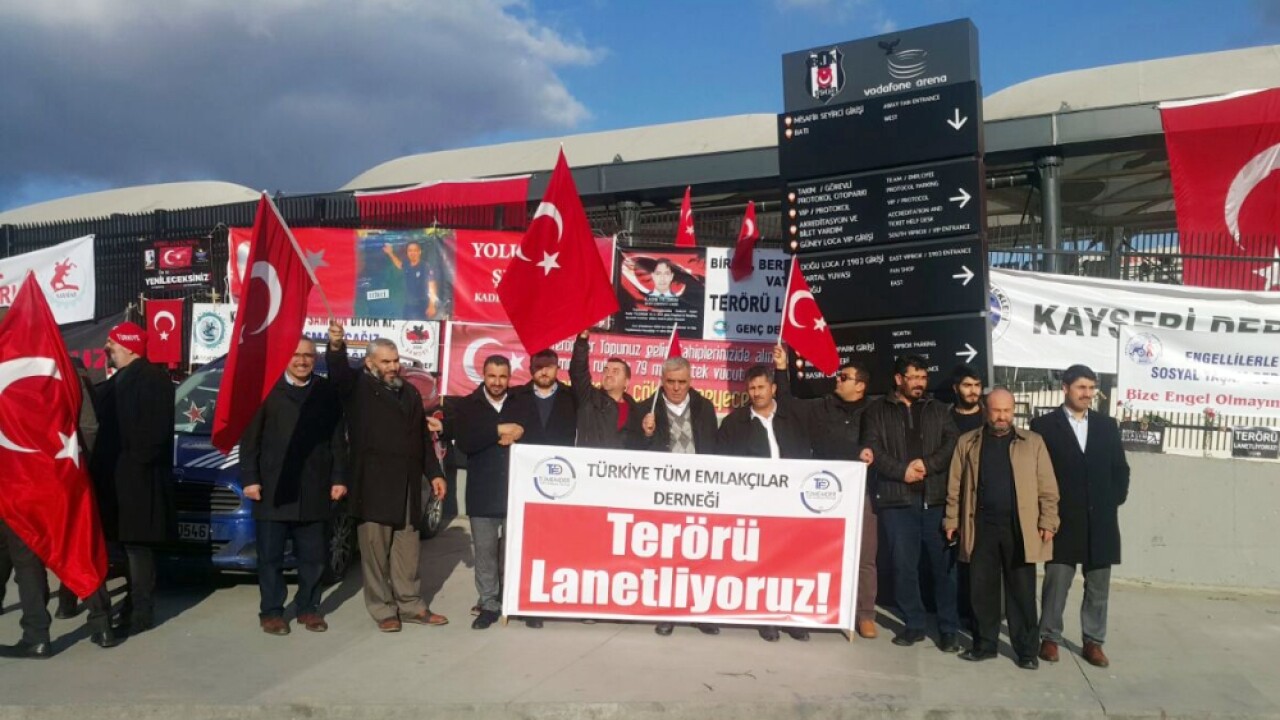 Tüm Emlakçılar Derneği üyeleri, Beşiktaş ve Kayseri'de gerçekleşen hain saldırıları lanetlemek üzere Şehitler Tepesi'nde bir araya geldi. Türkiye'nin çeşitli kentlerinden İstanbul'a gelen emlakçılar, polis ve askere destek için Şehitler Tepesi'nde buluştu...