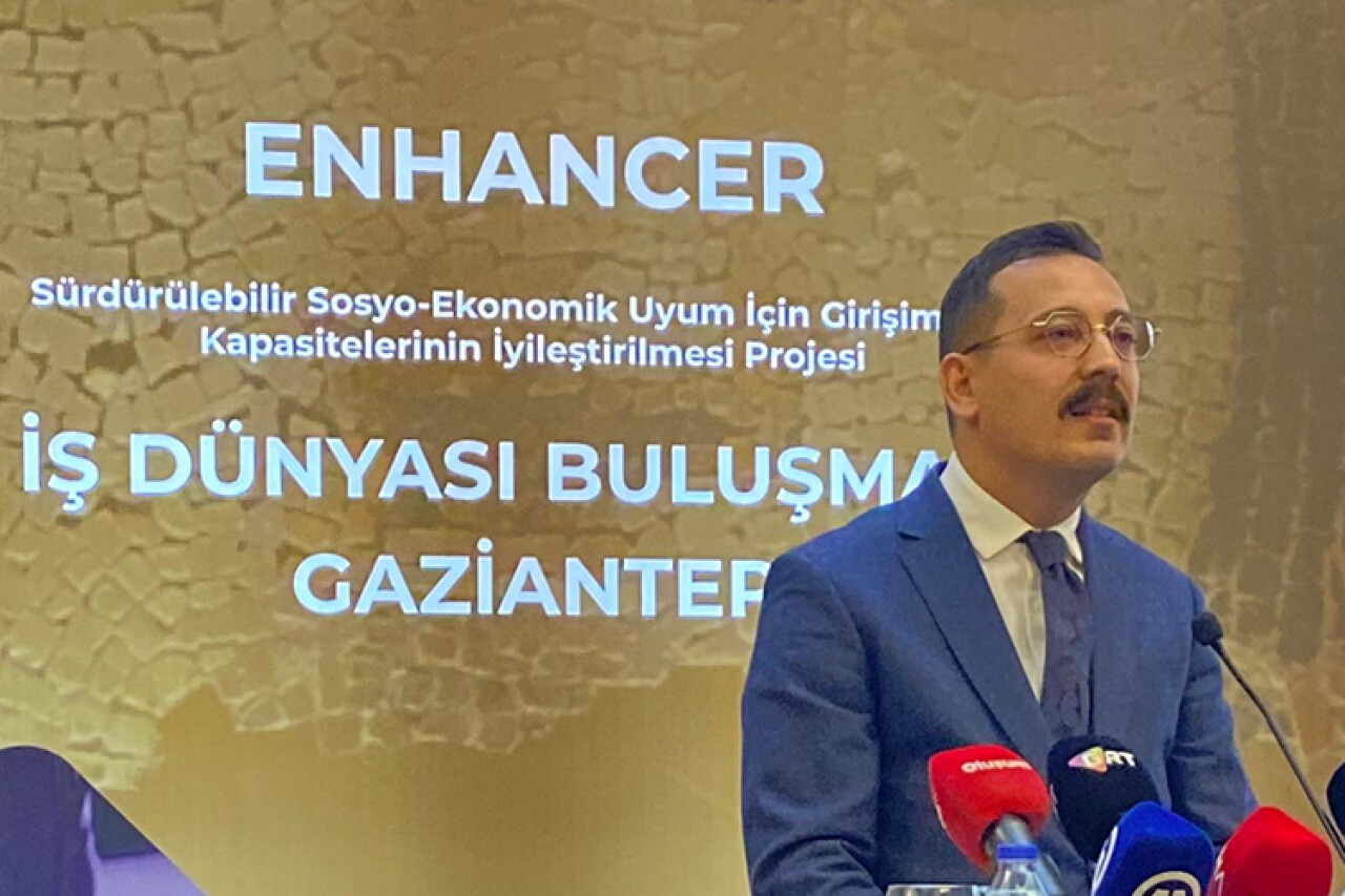 Avrupa Birliği tarafından finanse edilen ve Uluslararası Göç Politikaları Geliştirme Merkezi (ICMPD) tarafından, T.C. Sanayi ve Teknoloji Bakanlığı Kalkınma Ajansları Genel Müdürlüğü koordinasyonuyla yürütülen “Sürdürülebilir Sosyo-Ekonomik Entegrasyon için Girişimcilik Kapasitelerinin İyileştirilmesi (ENHANCER) Projesi” yeni çalışması, ‘İş Dünyası Buluşması’ ile Gaziantep’deydi.