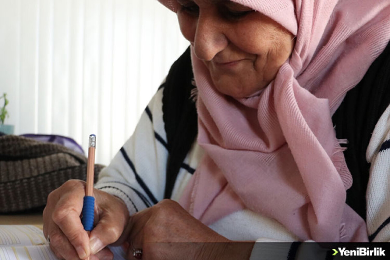"Asrın felaketi" olarak nitelenen Kahramanmaraş merkezli depremlerin etkilediği Malatya'da bir bölümü yıkılan evinin enkazından çıkartılan 77 yaşındaki Elmas Doğan, kaldığı konteyner kentte okuryazar oldu.
