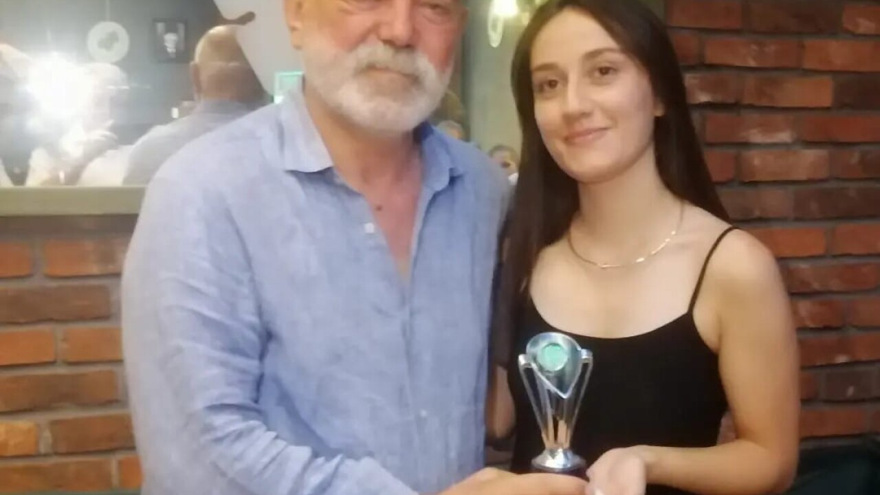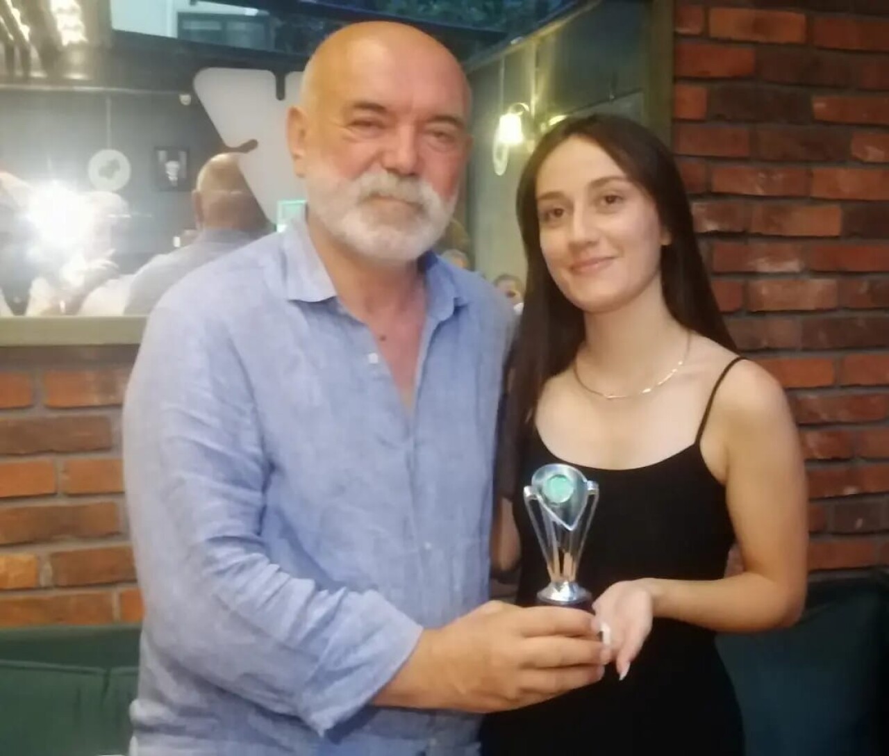 Etkinlik sonrası Merhaba Dergisi Haber Müdürü Yağmur Onurlubaş Ercan Kesal’a bir