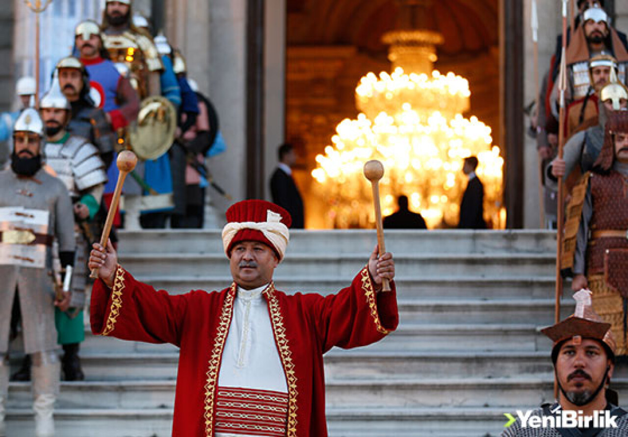 YENİBİRLİK - Dolmabahçe Sarayı Büyük Muayede Salonu'nda düzenlenen yemek öncesi konukları Dışişleri Bakanı Mevlüt Çavuşoğlu ile eşi Hülya Çavuşoğlu karşıladı. Mehter takımının marşları eşliğinde gerçekleştirilen karşılamada, Cumhurbaşkanlığı forsunda yıldızlarla simgelenmiş Türk devletlerinin askerlerinin kıyafetlerini giyen görevliler de yer aldı. Cumhurbaşkanı Erdoğan ve eşi Emine Erdoğan ise mehter takımının çaldığı Devlet Marşı ile salona giriş yaptı. Erdoğan, salona girişinde ilk kez Antalya'da düzenlenen G-20 Zirvesi'nde uygulanan ve üzerinde Dünya İnsani Zirvesi aile fotoğrafının yer aldığı tabloda isminin üzerine imza attı. Yemeğe katılan ve aralarında BM Genel Sekreteri Ban Ki-mun, Azerbaycan Cumhurbaşkanı İlham Aliyev ve Filistin Devlet Başkanı Mahmut Abbas'ın bulunduğu heyet başkanları da tabloda kendi bölümlerini imzaladı.