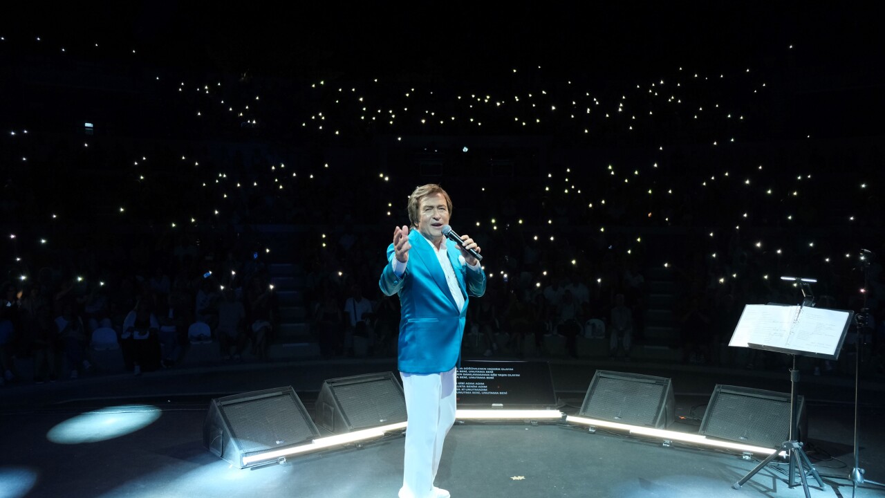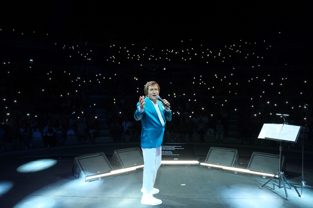 Sanatçı, Kral Pop’un medya sponsorluğunda gerçekleşen gecede, sahneye beyaz gömlek ve pantolonun turkuaz renk ceketle kombinlendiği bir takımla çıktı. Evgin, 3 bin hayranından oluşan koro eşliğinde söylediği Türk pop müziğine damga vurmuş şarkılarıyla İzmirli müzikseverlere coşkulu saatler yaşattı.