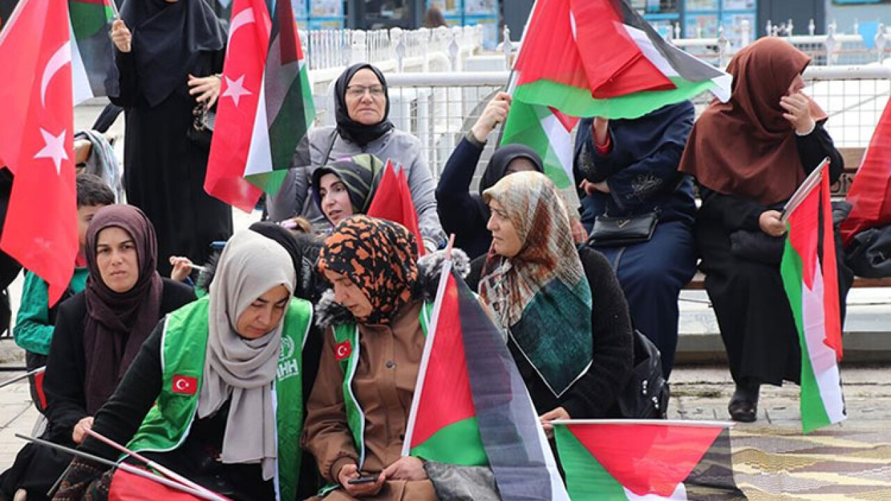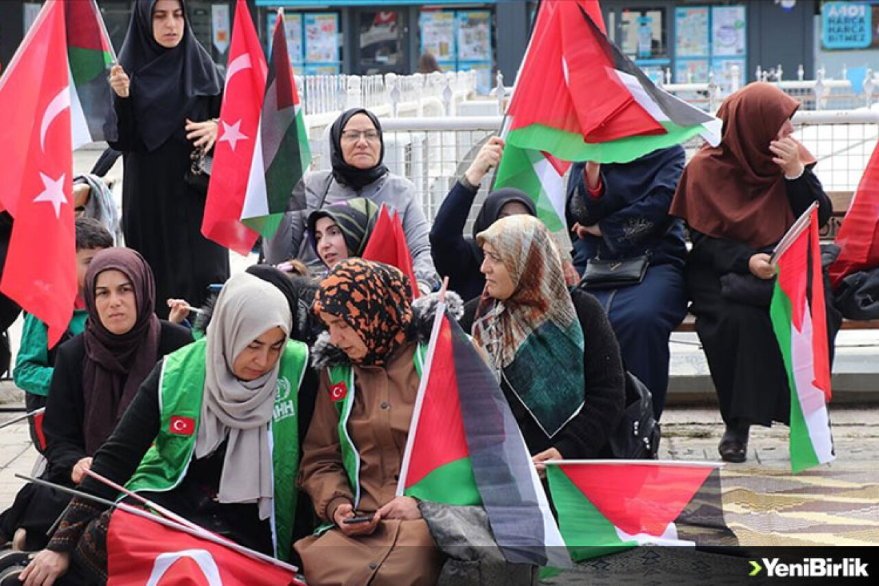 Filistinli Kadınlarla Dayanışma İnisiyatifi öncülüğünde kadınlar ve çocuklar, Türkiye ve Filistin bayraklarıyla Cumhuriyet Meydanı'nda toplandı.