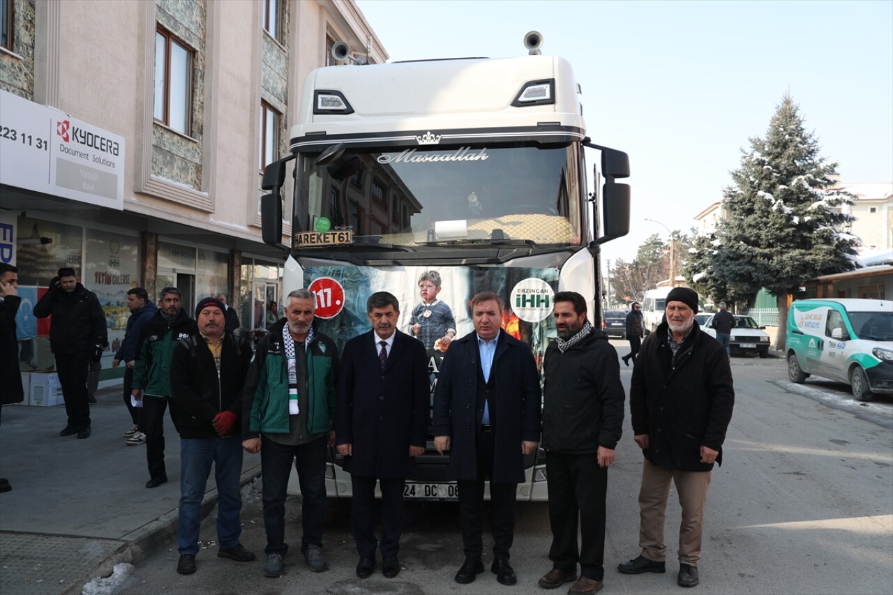 İnsan Hak ve Hürriyetleri (İHH) İnsani Yardım Vakfı Erzincan Şubesi öncülüğünde hayırseverlerden temin edilen kömür, temel gıda maddeleri ile giyecek yüklü 120. tırın uğurlanması için dernek binası önünde tören düzenlendi.