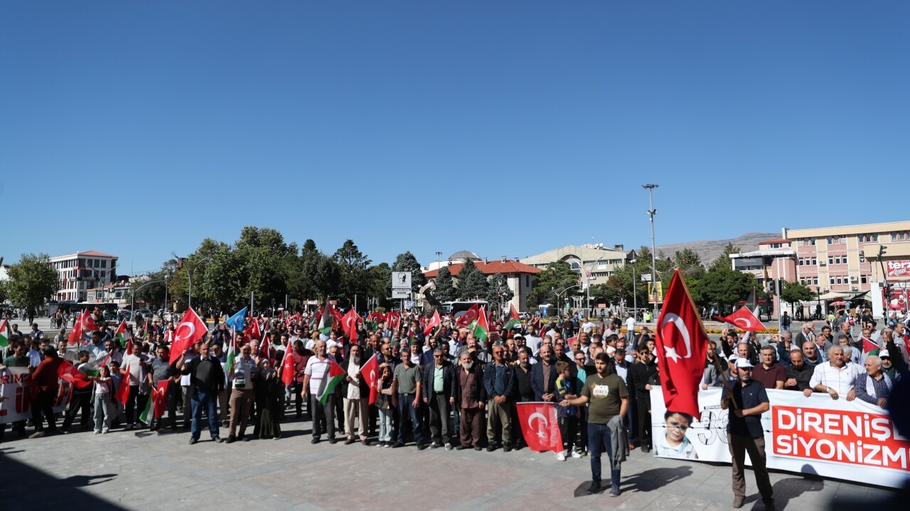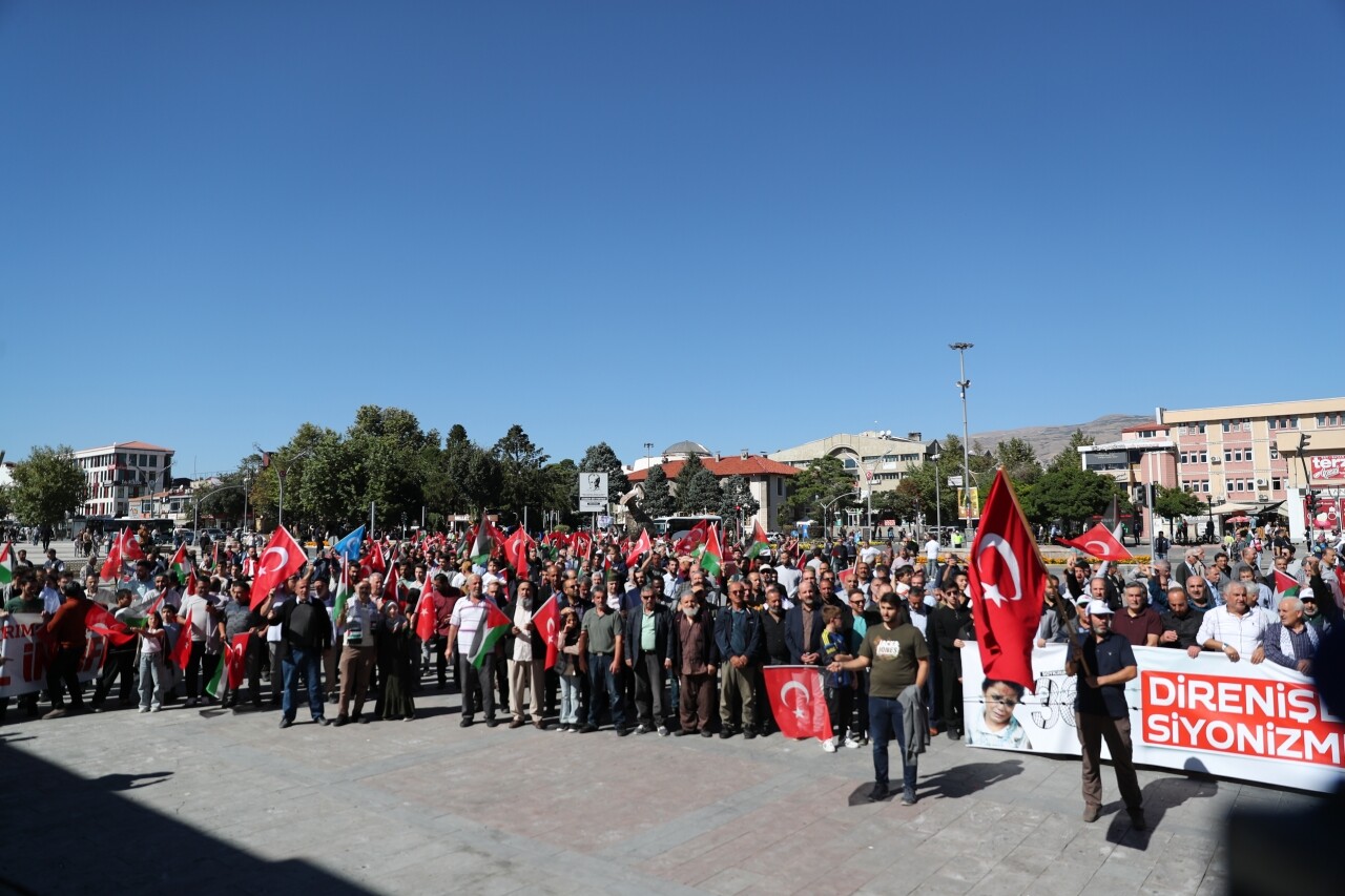 Erzincan'da İsrail'in Filistin'e yönelik saldırılarına tepki göstermek amacıyla "Soykırıma İsyan, Filistine Destek Yürüşü" düzenlendi.