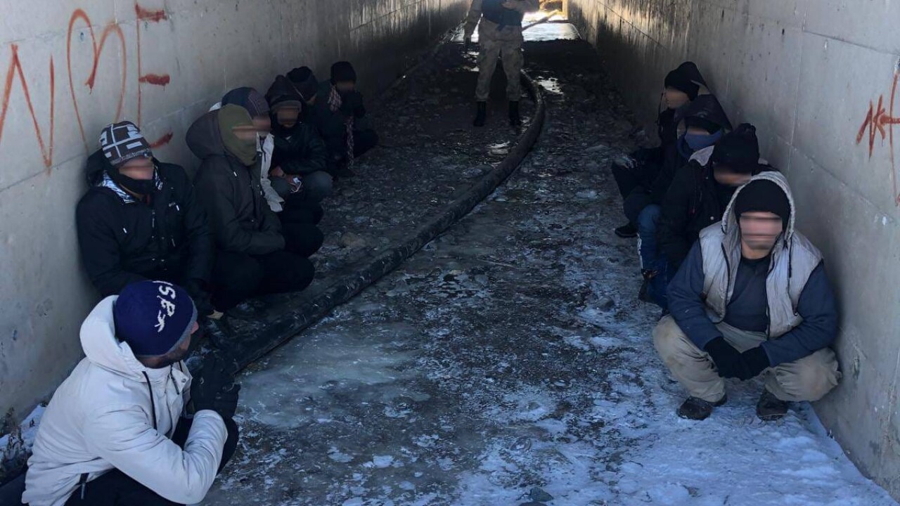 Ekipler, Pasinler ilçesi Gölciğez Mahallesi'nde arazide bir menfeze gizlenmiş 12 düzensiz göçmeni yakaladı.