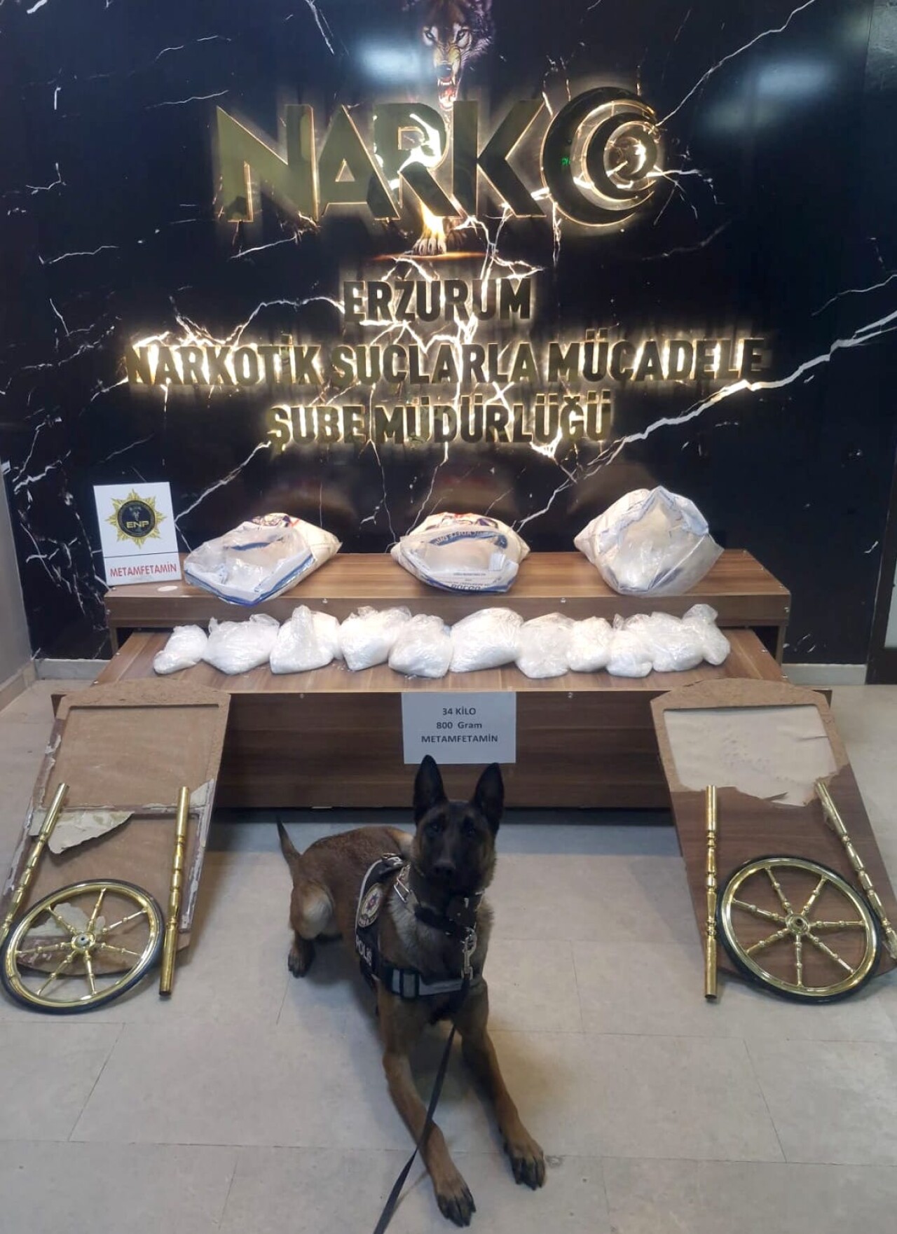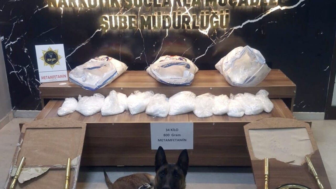 Bu kapsamda, narkotik madde arama köpeği "Hera" ile operasyon düzenleyen polis ekipleri, 34 kilo 800 gram sentetik uyuşturucu ele geçirdi.