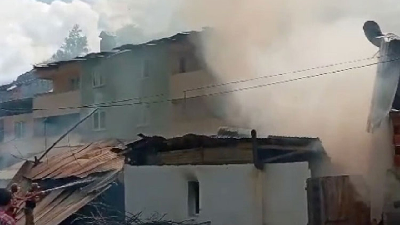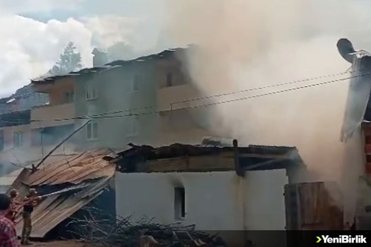 Köşeyolu Mahallesi'ndeki bitişik evlerin olduğu bölgede, henüz bilinmeyen nedenle yangın çıktı.