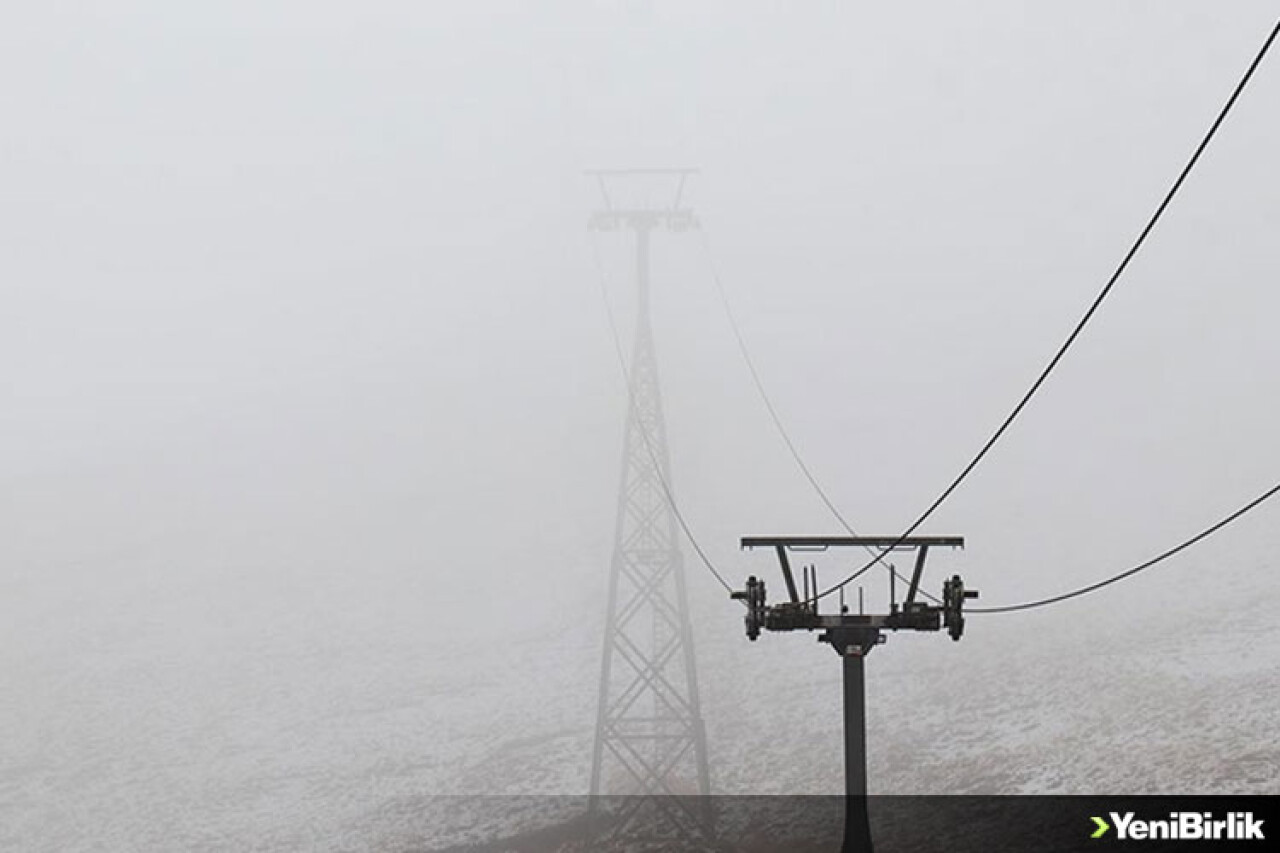 Palandöken Kayak Merkezi'nin yüksek kesimleri, yağan karla beyaza büründü.