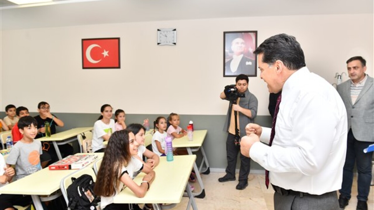 8-14 yaş aralığındaki 4 bin 900 çocuğun Türkçe, matematik, robotik kodlama, müzik, resim, yaratıcı drama gibi çeşitli bilim ve sanat alanlarda eğitim alacağı kursların açılışını Belediye Başkanı Prof. Dr. Ahmet Özer yaptı. Yunus Balta Kültür Merkezi’ndeki açılış programında tek tek derslikleri gezen Başkan Özer, ilk derslerinde öğrencilerin yanlarında oldu.