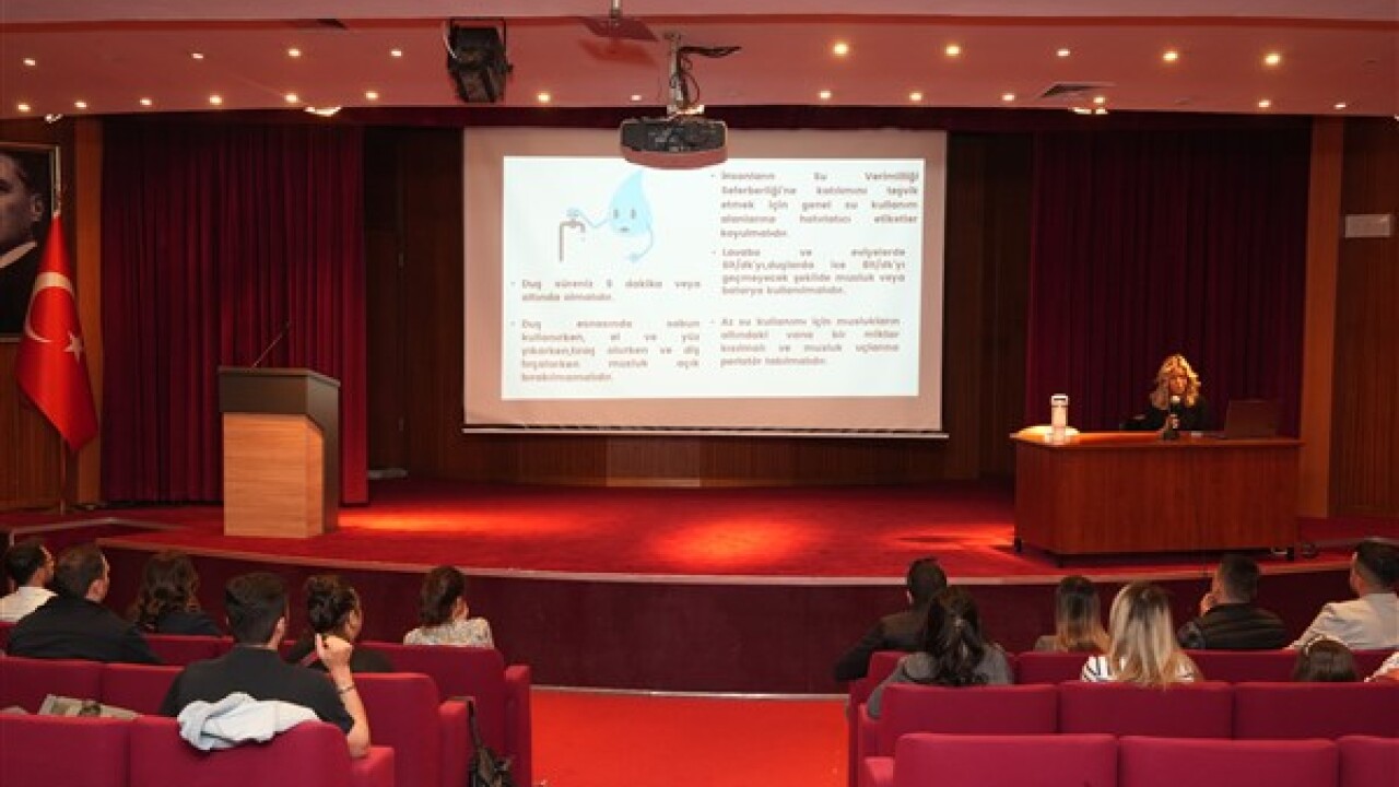 Eğitimde; suyun bilinçli kullanımının önemi, su israfını azaltmak için alınabilecek önlemler, suyun geri dönüşümü ve yağmurlama sistemlerinin kullanımı gibi yenilikçi yöntemler ile su ayak izimizi nasıl hesaplarız ve nasıl düşürebiliriz konularından bahsedildi.