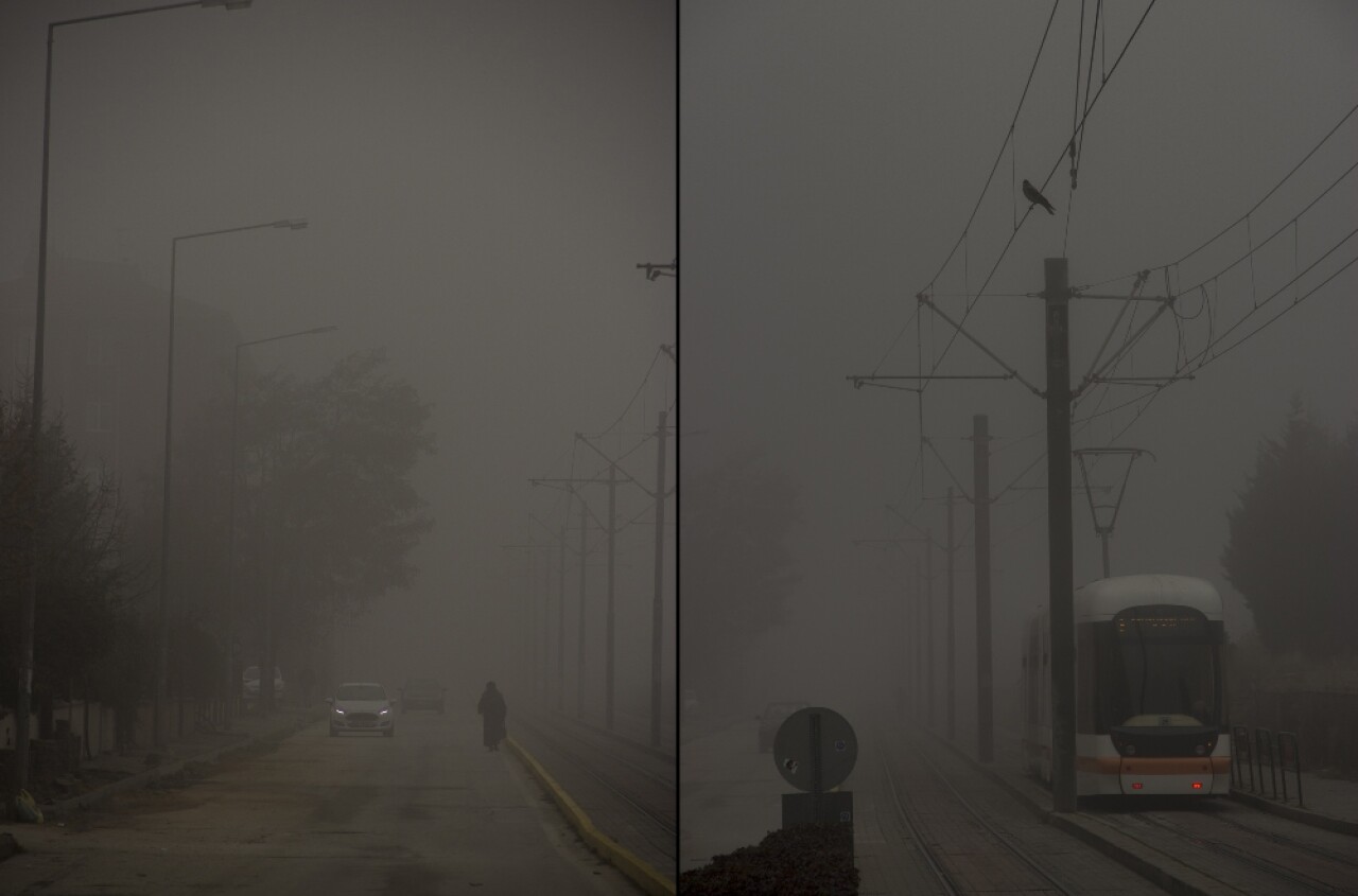 Eskişehir kent merkezinde sabah saatlerinde etkili olan sis, özellikle yüksek kesimlerde trafik akışını olumsuz etkilerken ilginç görüntüler oluşturdu.