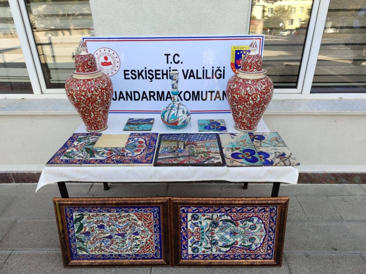 Zanlının evinde yapılan aramada, Osmanlı dönemi İznik menşeli 2 porselen vazo, İznik menşeli lalelik vazo, ahşap çerçeveli 2 tablo, 5 karodan oluşan tablo ile İznik menşeli 10 porselen karo ele geçirildi.