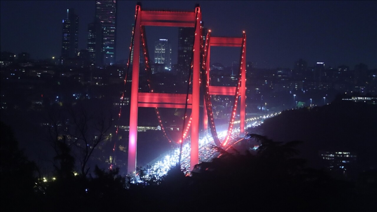 Önemli günlerde renk ve ışık gösterileriyle aydınlatılan yapılardan FSM Köprüsü, kalp ve damar hastalıkları ile buna bağlı ölümlere dikkati çekmek için kırmızıya büründü.