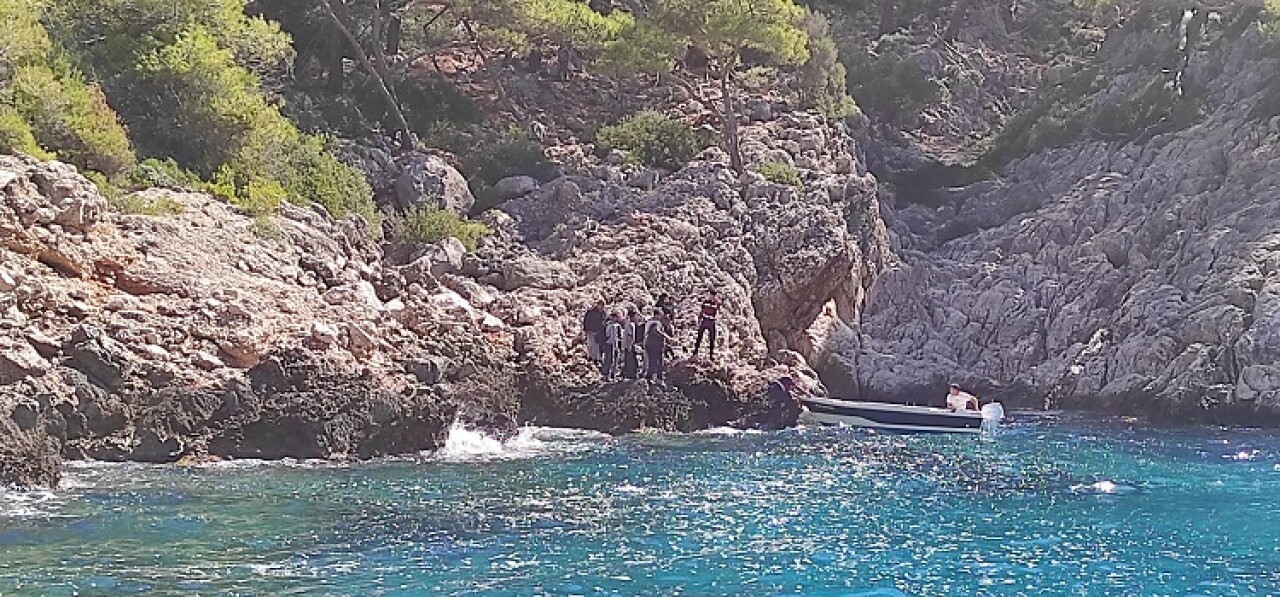 Sahil Güvenlik Komutanlığından yapılan açıklamaya göre, ilçedeki Gemlik Koyu'nda bir grup düzensiz göçmenin olduğu bilgisinin alınması üzerine bölgeye, Sahil Güvenlik botu ile İlçe Jandarma Karakol Komutanlığı ekipleri sevk edildi.