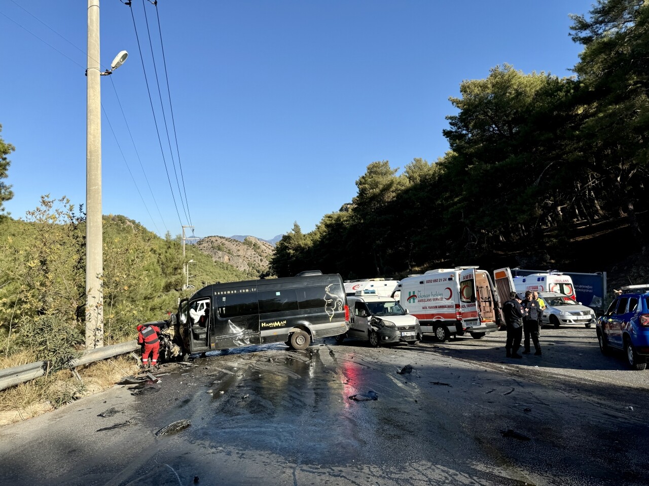İhbar üzerine kaza yerine çok sayıda sağlık, itfaiye ve polis ekibi sevk edildi.