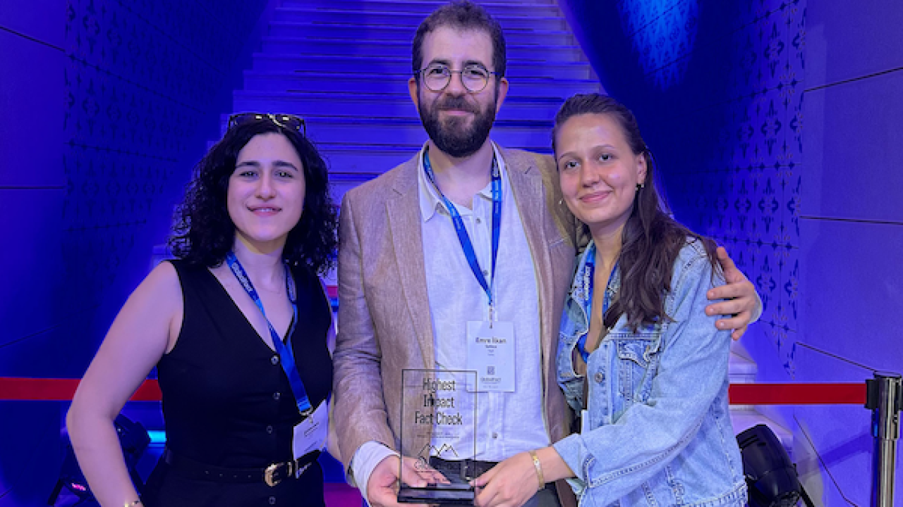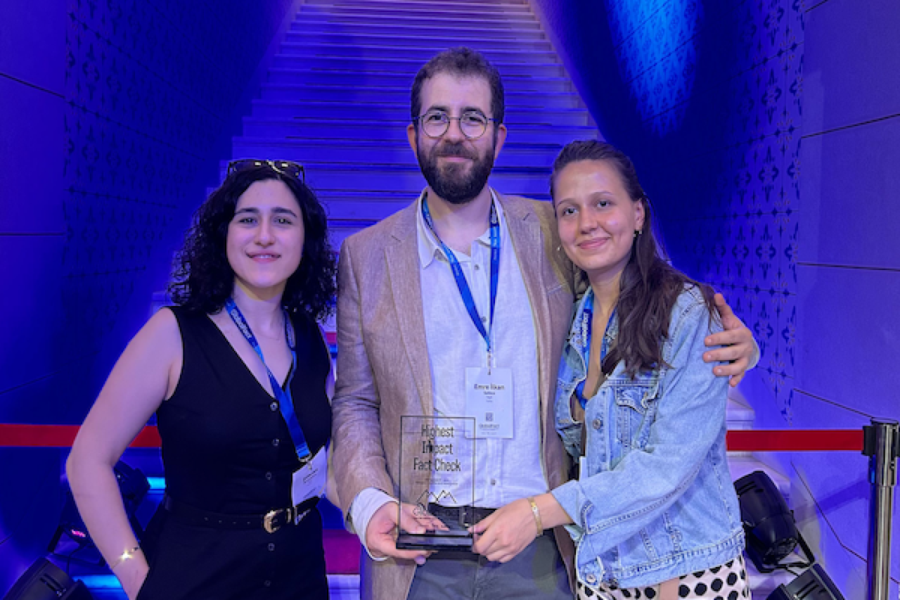 Dijitalin yaygınlaşmasıyla birlikte bilgiye erişmek yalnızca birkaç saniyemizi alırken, yanlış bilginin yayılması da aynı hızla tetikleniyor. Dünyadaki yanlış bilgi havuzuna karşı küresel mücadelede gerçek bilgi savunucularını desteklemek için kurulan Uluslararası Doğruluk Kontrol Ağı (IFCN) ise 2014’den bu yana her yıl düzenlediği Global Fact’in 11’incisini Bosna Hersek’in başkenti Saraybosna’da gerçekleştirdi. 26-28 Haziran tarihlerinde yapılan zirveye dünyanın dört bir yanından 500’den fazla teyit organizasyonu katıldı. Dört kategoride toplam 113 başvuru yapıldığı ödül töreninde, doğrulama platformu Teyit de ‘Filistin halkının toprak sattığı iddiasıyla ilgili neler biliniyor?’ başlıklı araştırmasıyla En Yüksek Etki Ödülü’nü kazandı.