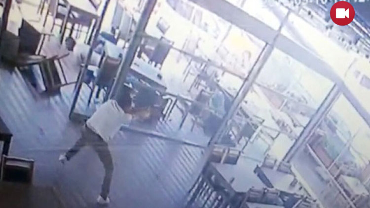 Kafedekilerin de saldırganlara silahla ateş açarak karşılık verdiği olayda bir kişi yaralanırken çatışma anları kameralara saniye saniye yansıdı.
