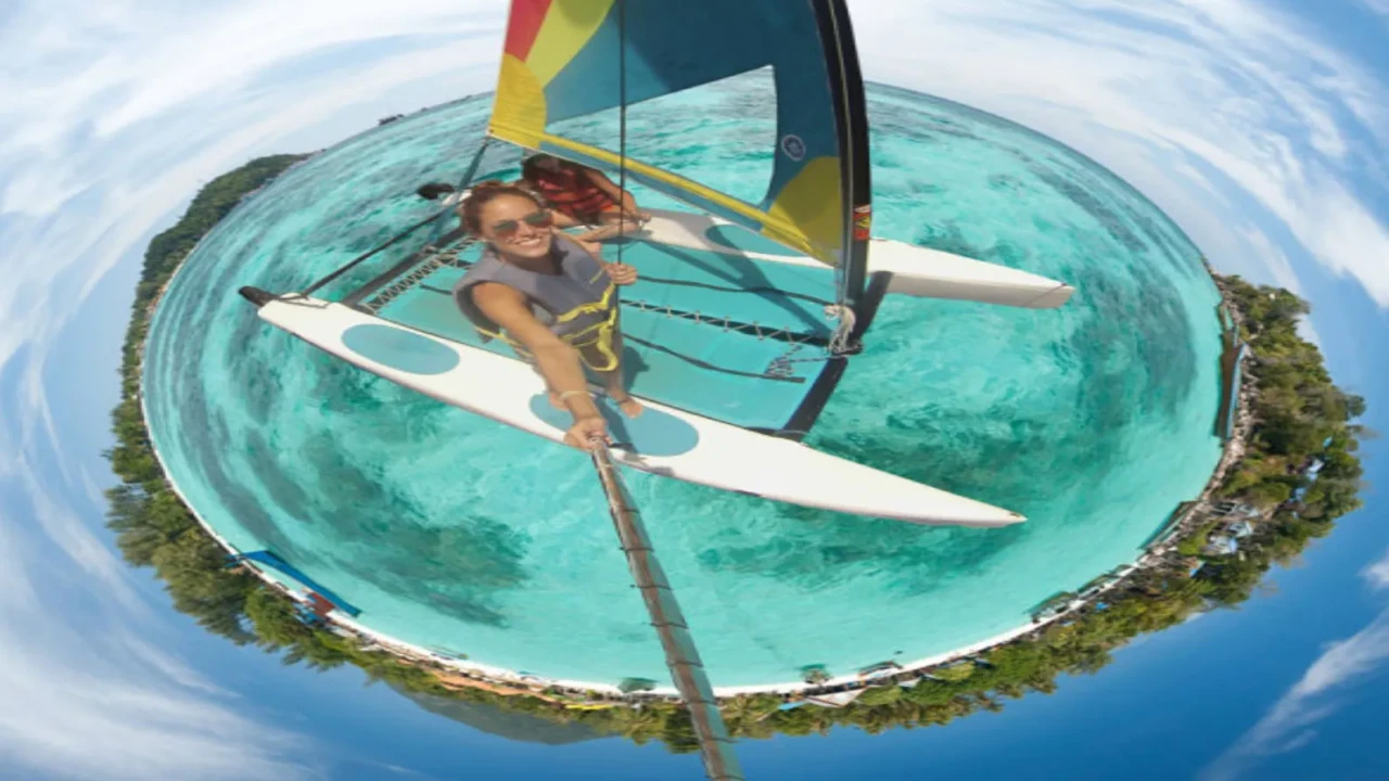 Okyanusun yüzeyinde, alışılmadık bir piknik sahnesi.