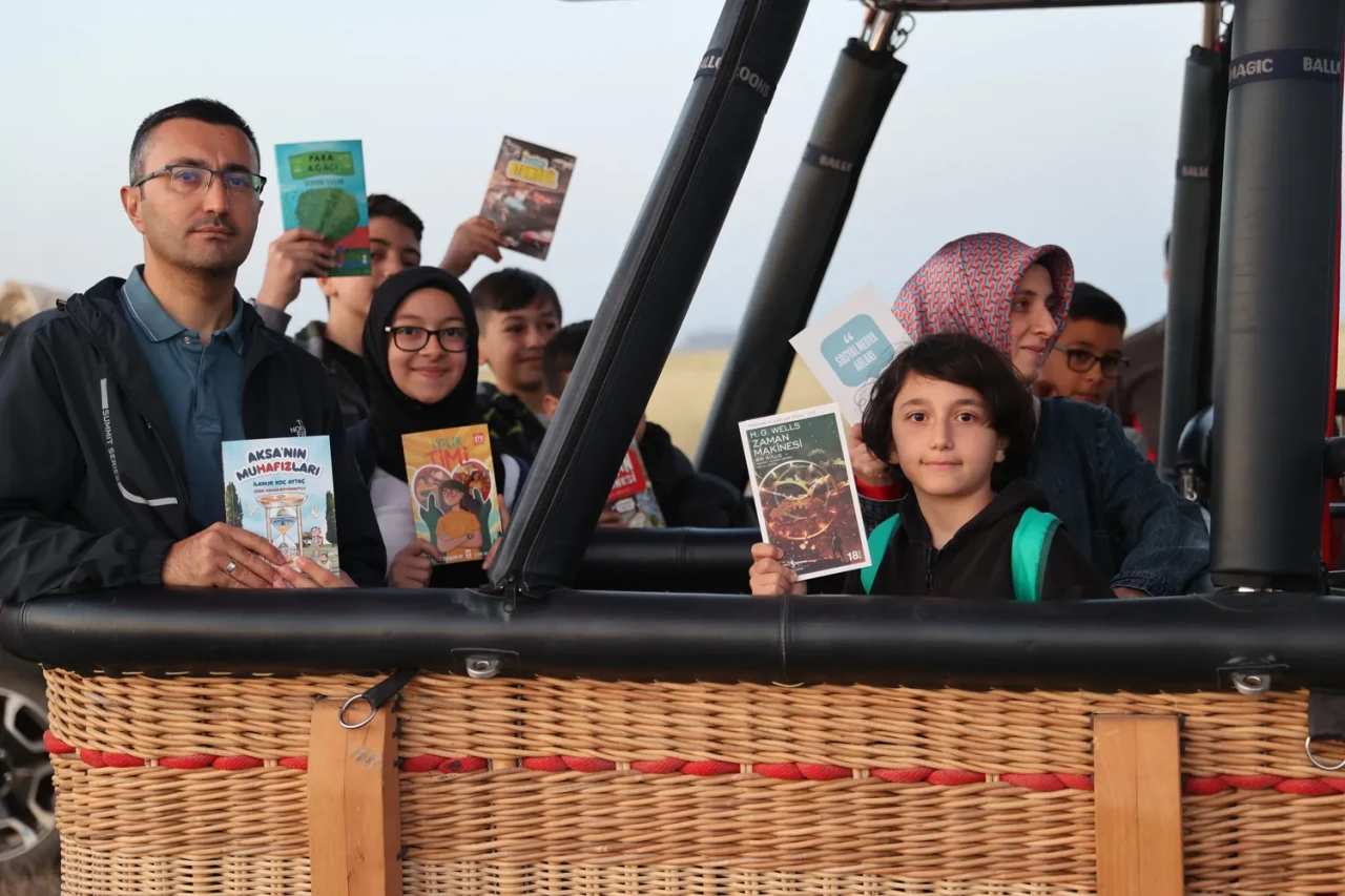 Nevşehir’in Çat beldesinde sabahın ilk ışıklarıyla hazırlanan sıcak hava balonlarına binen 60 öğrenci ve öğretmen, ellerinde kitaplarıyla gökyüzüne yükseldi. Eşsiz Kapadokya manzarası eşliğinde gerçekleştirilen bu özel etkinlikte katılımcılar, doğayla iç içe kitap okumanın keyfini yaşadı.
