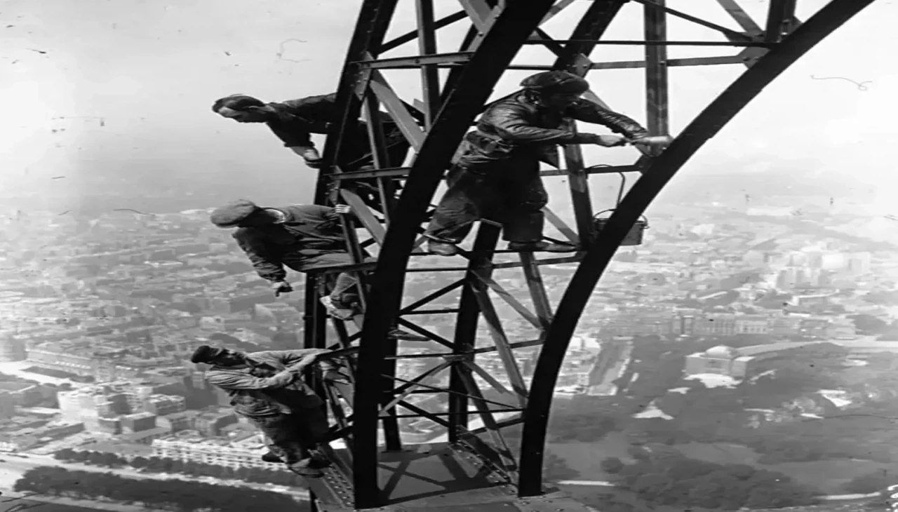 Dünyanın en ikonik yapılarından biri olan Eyfel Kulesi’nin gövdelerinde çalışan işçilerden tarihi bir kare.