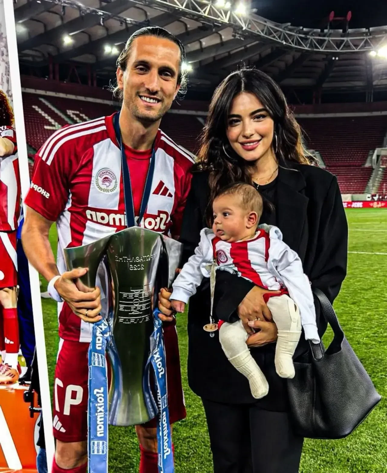Doğumdan bu yana oğullarını gözlerden uzak tutmayı tercih eden çift, bu kararlarından ilk kez taviz vererek, Mylan’ın yüzünü kamuoyuyla paylaştı. Yusuf Yazıcı’nın formasını giydiği Olympiakos’un şampiyonluk kutlamalarına katılan Melisa Aslı Pamuk, 3 aylık oğlu Mylan’ı da yanında götürdü.