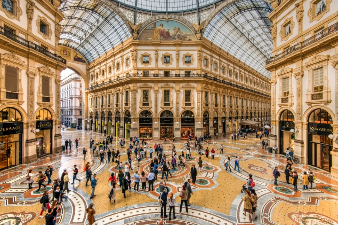 Milano’nun en ünlü alışveriş noktalarından biri olan Galleria Vittorio Emanuele II, lüks markalar, tarihi kafeler ve zarif mimarisiyle adeta bir moda mabedi.