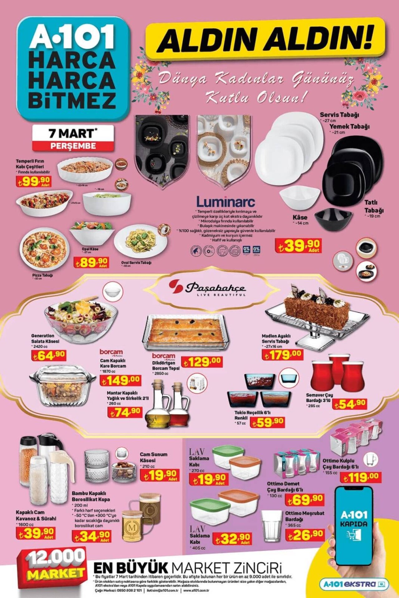 A101 marketlerin aktüel haftalık kataloglarını merak eden vatandaşlar için 7 Mart 2024 Perşembe gününde itibaren başlayacak kampanya belli oldu. Buna göre bu hafta LAV ve Paşabahçe cam ürünlerinden Brita sürahilere, plastik ürünlerinden spor aletleri ve giyime, marka bluetooth kulaklıklardan küçük ev aletlerine, seccadeden yastığa pek çok ürün kategorisinde indirimler müşterilerini bekliyor.