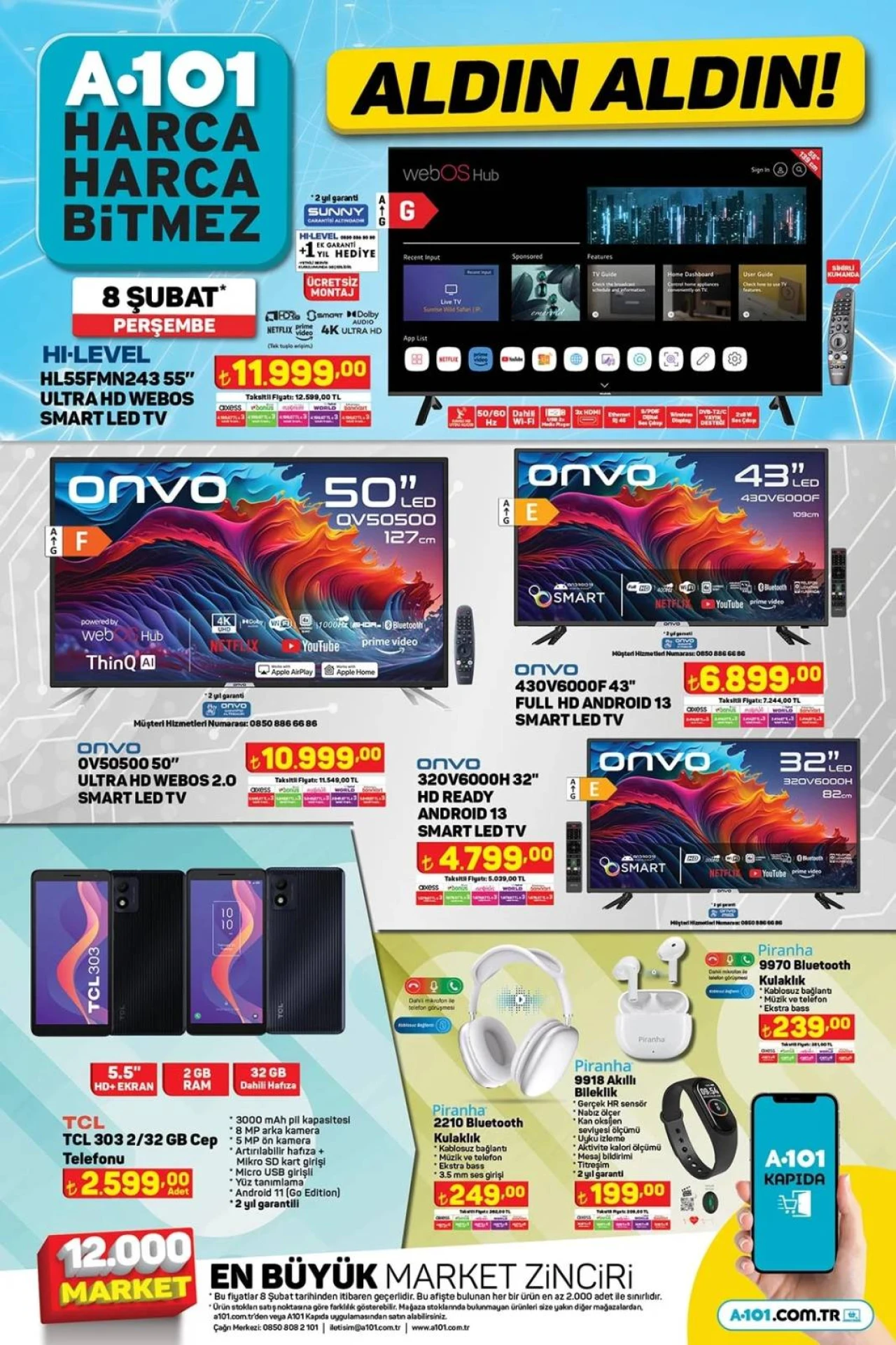 Onvo 43' Full HD Android 13 Smat Led Tv 6.899 TL