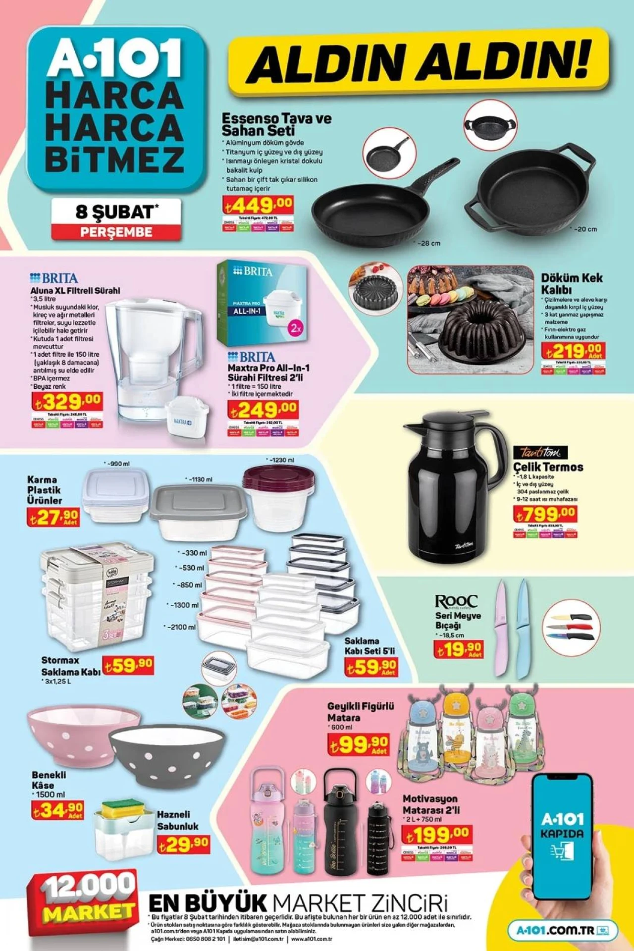 A101 marketlerin aktüel kataloglarını merak edenler için bu hafta okula başlayan öğrenciler de unutulmamış. 08 Şubat 2024 Perşembe günü başlayan kampanyada LAV marka sevilen bardaklarında Brita sürahilere, okula dönüş ürünlerinden boyama kalemi, çanta ve lisanslı defterlere, dikiş makinesinden kişisel bakım ürünlerine pek çok farklı seçenekteki ürünler müşterilerinin beğenisine sunuluyor. Kampanya 08 Şubat 2024 tarihinde başlamıştır.
