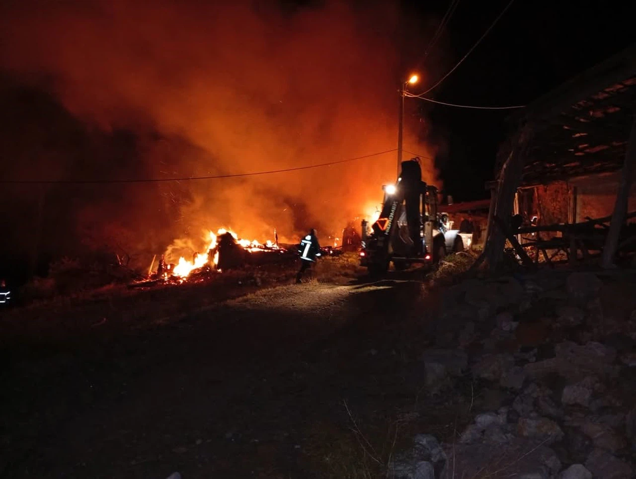 Yangında ev, samanlık ve saman balyaları küle döndü.