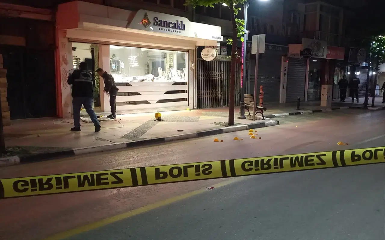 Çarşı Mahallesi Doktor Sadık Caddesi'nde saat 04.00 sıralarında otomobille kuyumcu dükkanı önüne gelen zanlılar, iş yerinin kepengini kesip camları kırarak içeri girdi.