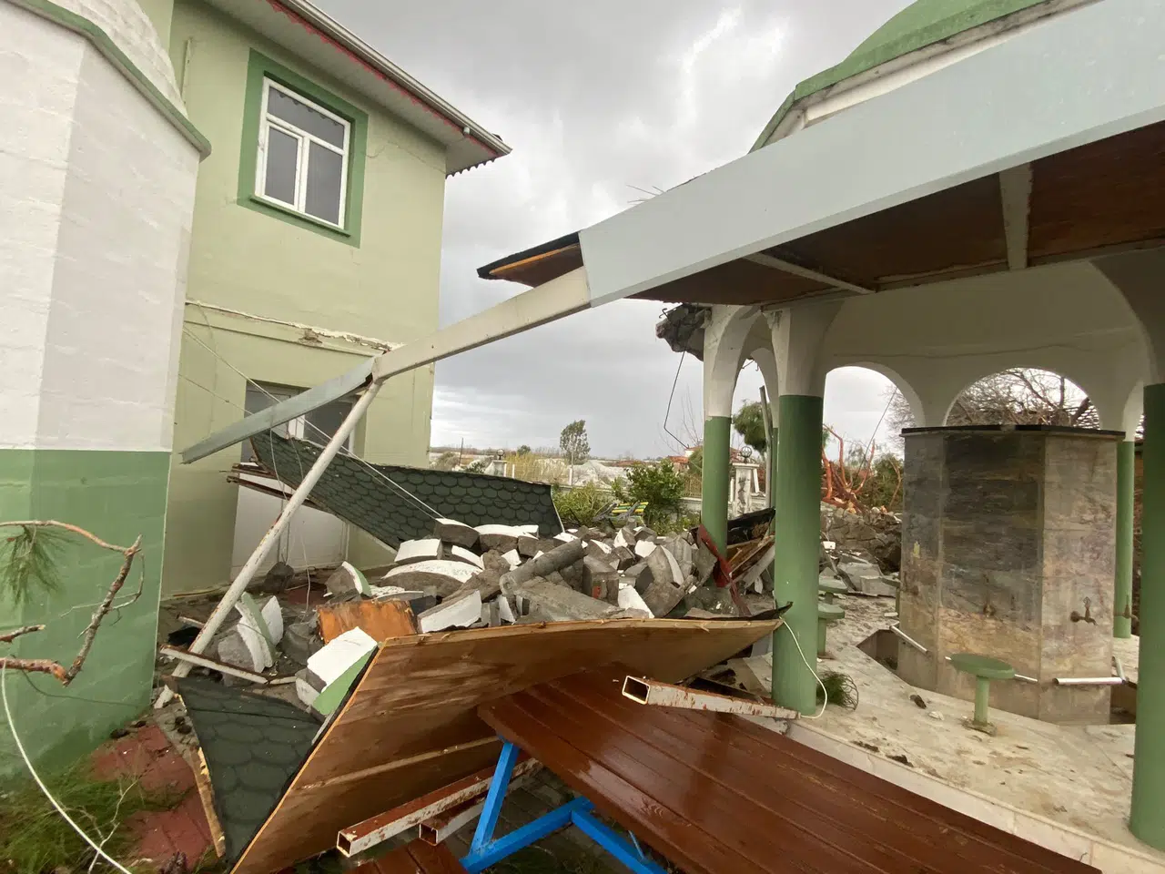 Denizyaka Mahallesi'nde hortumun etkisiyle cami minaresi yıkılarak avludaki abdesthanenin üzerine devrildi. Abdesthane kullanılamaz hale gelirken, avludaki çam ağaçlarından biri kökünden sökülüp devrildi.