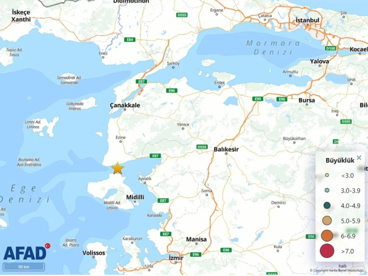Çanakkale'nin Ayvacık ilçesi açıklarında meydana gelen 5,2 büyüklüğündeki deprem, 8,65 kilometre derinlikte yaşandı ve Çanakkale başta olmak üzere çevre illeri etkisi altına aldı. Balıkesir, İzmir, Bursa ve Tekirdağ gibi büyük şehirlerde de hissedilen sarsıntı, İstanbul'dan da sosyal medya paylaşımlarına yansıdı. Depremin ardından, İstanbul'un bazı ilçelerinde de yoğun bir şekilde hissedilen sarsıntı, vatandaşlarda kısa süreli paniğe yol açtı.