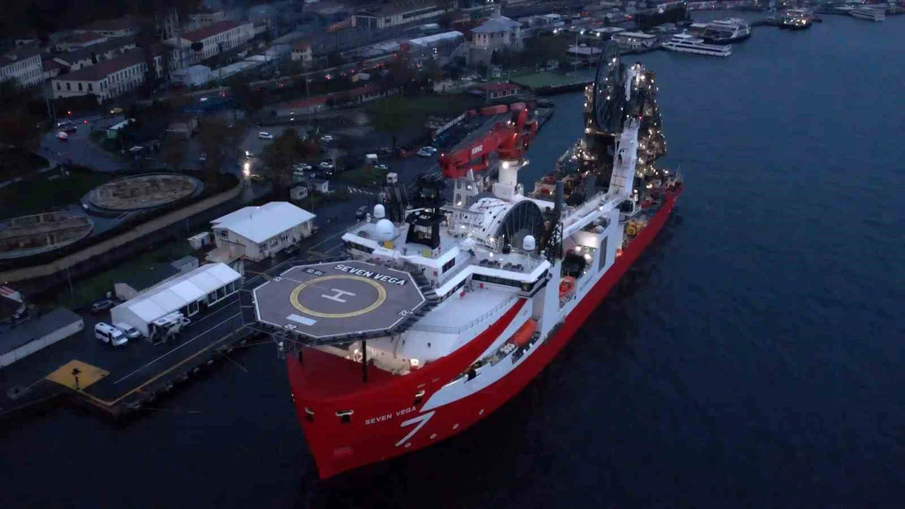 Sakarya’daki Faz 2 kapsamında deniz altına yerleştirilecek boru hatlarının kurulumunu gerçekleştirecek olan Seven Vega havadan görüntülendi.