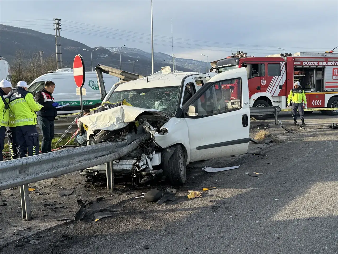 Otoyolun Ankara istikametinde seyreden D.Y'nin kullandığı 34 GJA 956 plakalı hafif ticari araç, Üçköprü mevkisinde kontrolden çıkarak bölgedeki bir dinlenme tesisinin girişindeki bariyere çarptı.
