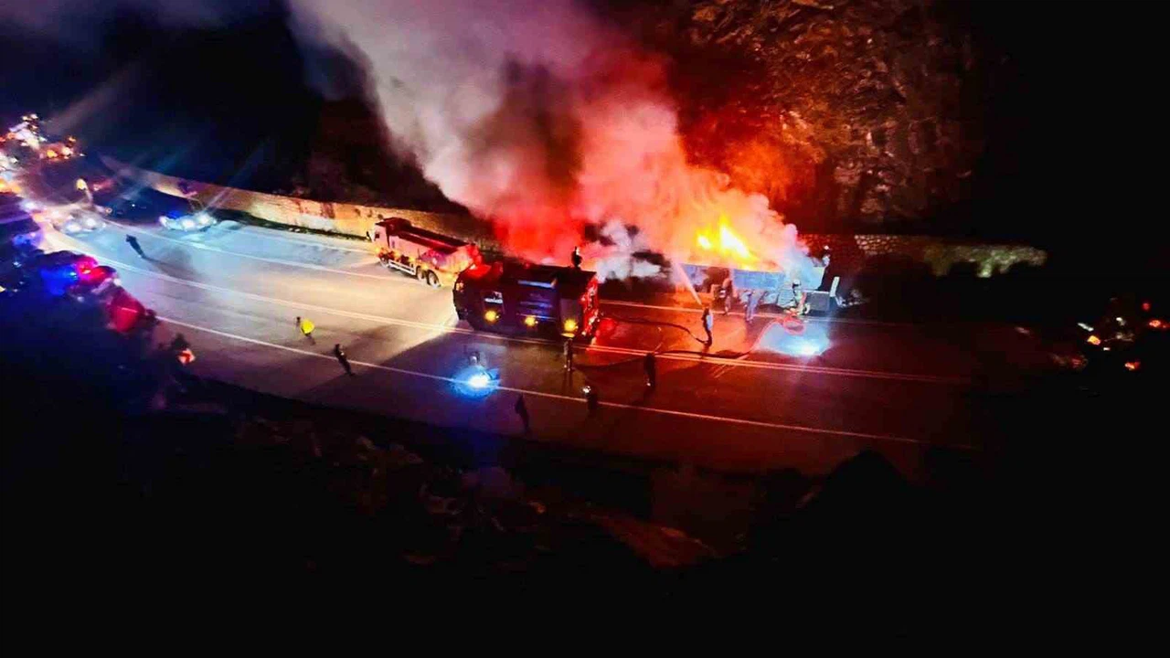 Olay Akseki-Manavgat D-695 Karayolu’nda yaşandı. Edinilen bilgiye göre, Akseki istikametinden Manavgat yönüne seyir halindeki Hüseyin S.’nin kullandığı 42 KY 670 çekici ve 42 ALY 933 dorse plakalı sunta yüklü tır, Manavgat’a bağlı Gençler Mahallesi sınırlarına geldiğinde dorsesinden alevler yükselmeye başladı.