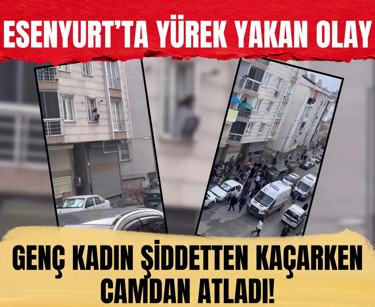 Olay, 12.00 sıralarında Esenyurt Fatih Mahallesi'nde yaşandı. İddiaya göre genç bir kadın, kocası tarafından darp edilerek eve kitlendi. Bir süre sonra cama çıkan kadın, atlamak isterken, durumu fark eden vatandaşlar yardıma koştu. Bir süre ikna edilmeye çalışılan kadın, mahallelinin battaniye açılmasını beklemeden kendini camdan attı. Durum polis ve 112 Acil Servis ekiplerine bildirilirken, yaralı şekilde yerde yatan kadın sağlık ekiplerinin olay yerindeki müdahalesinin ardından hastaneye kaldırıldı. Mahallelinin iddiasına göre ise kadının yüzünde morluklar ve vücudunda darp izleri görüldü. Kadının kendini camdan attığı anlar ise kameraya yansıdı.