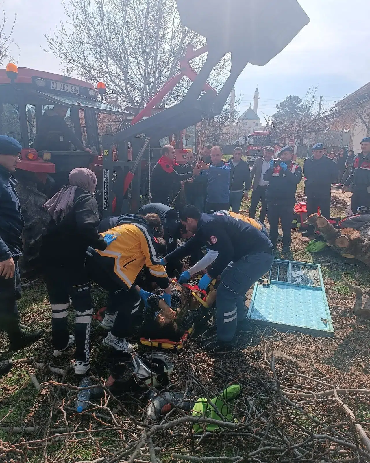 Ağaç dallarını toplayan talihsiz kadın bahçede bulunan 20 metre derinliğine sahip su kuyusunu fark edemeyerek içine düştü. Hatice Karahan’ın yardım çığlıklarını duyan vatandaşlar 112 Acil Çağrı Merkezine ihbarda bulundu.