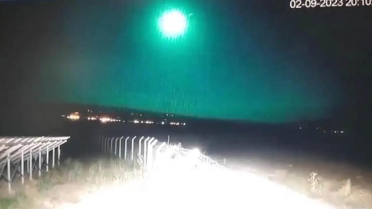 Kahramanmaraş semalarında belirlenen yeşil renkli bir cisim, gökyüzünü aydınlattı. Cismin düşüşü güvenlik kamerasınca kaydedildi.
