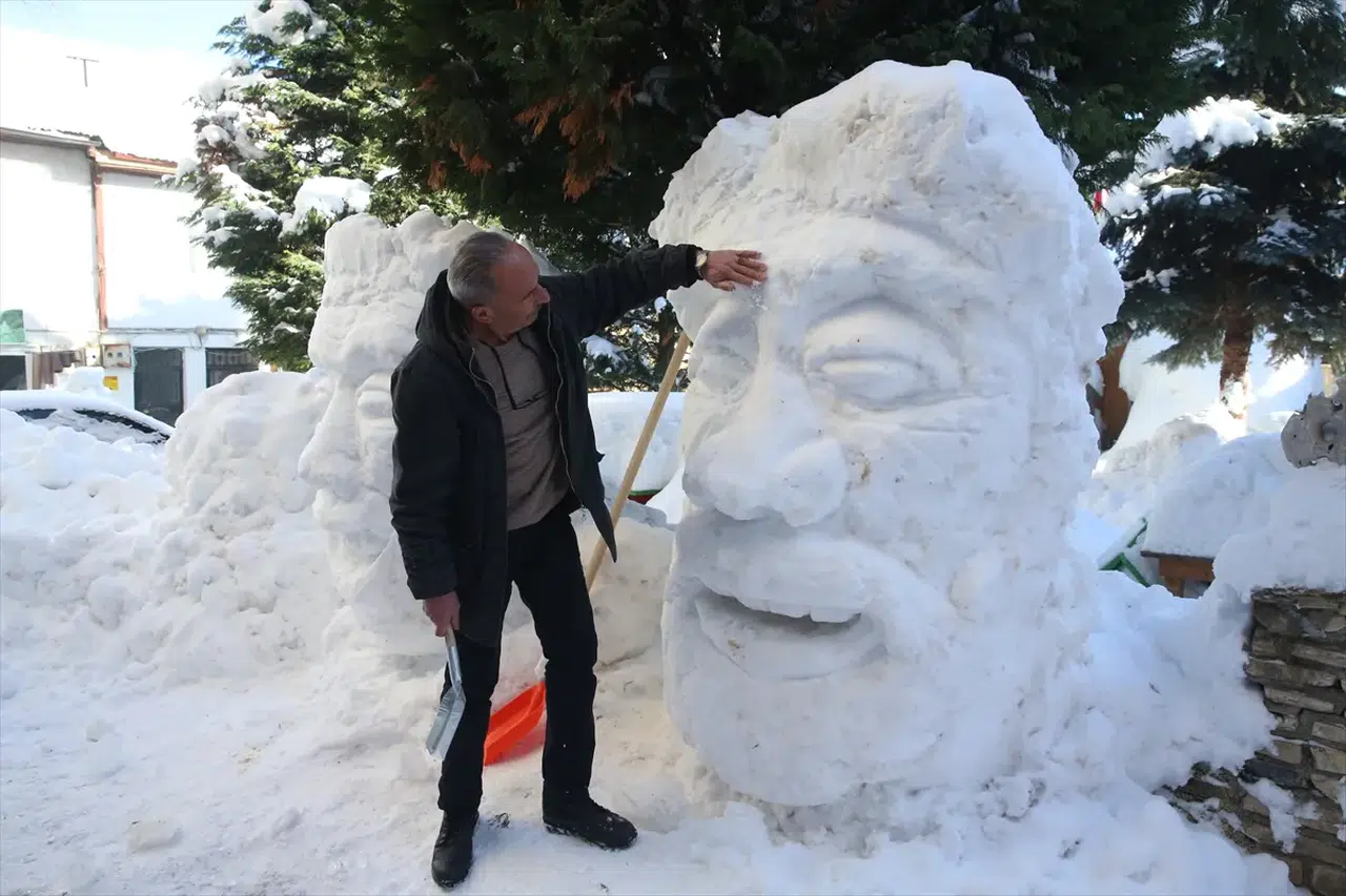Vatandaşlardan Büyük Beğeni: Kardan Heykeller Çocukluk Tutkusundan Doğuyor